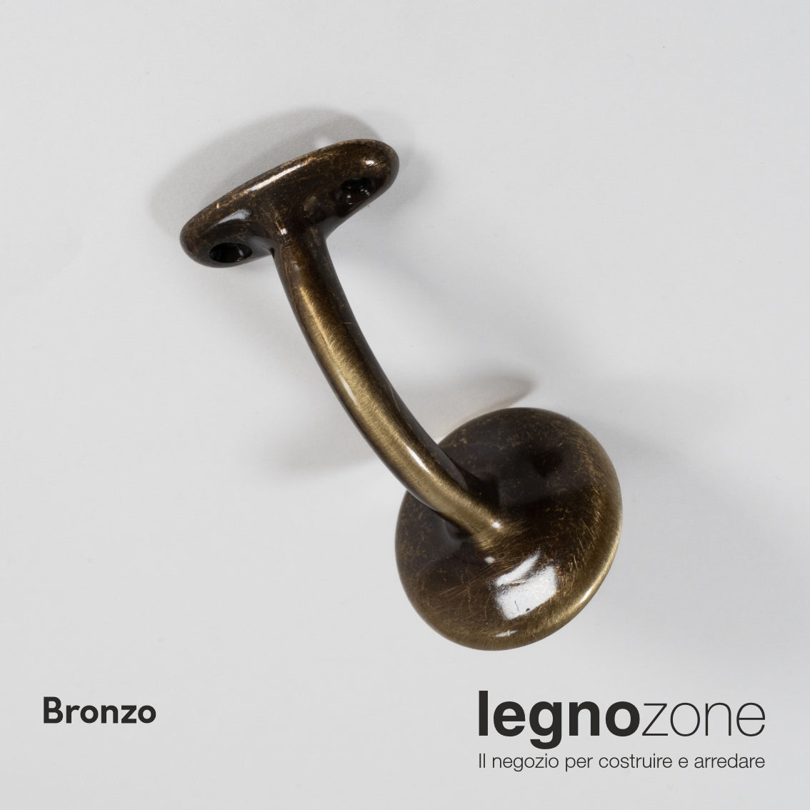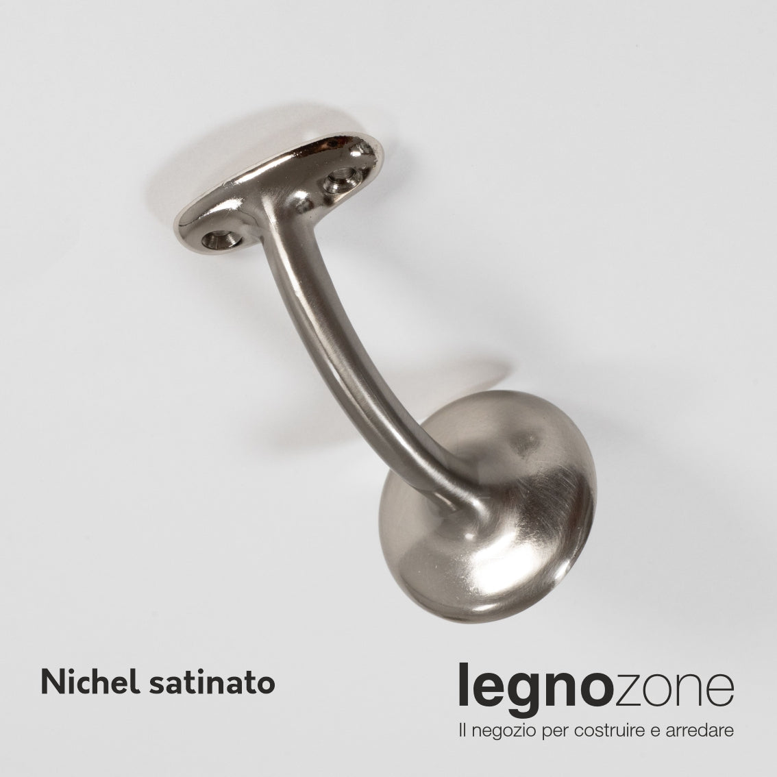 Supporto per corrimano con base piatta in lega di zama completo di viti per il montaggio a parete e fissaggio al corrimano.
